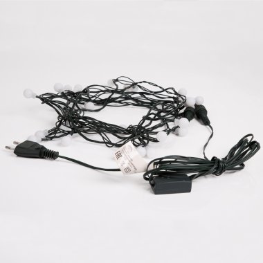 Данная гирлянда имеет длину 5м на которой расположено 30 шариков диаметром 13мм с цветом свечения светодиодов RGB.