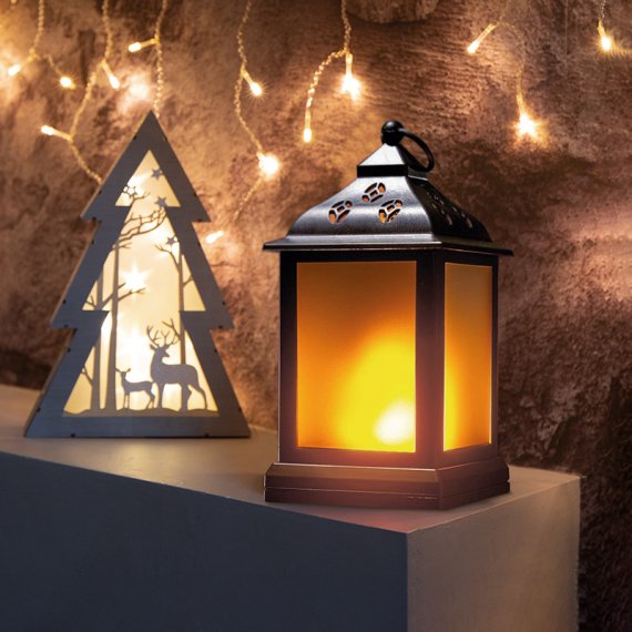 Декоративный фонарь с эффектом пламени свечи в корпусе черного цвета станет прекрасным украшением интерьера, которое гармонично дополнит обстановку, внесет нотку тепла и уюта, подарит ощущение комфорта хозяевам и гостям. В центре композиции находится небольшая пластиковая свеча, которая светится теплым белым светом и имитирует мерцание настоящего пламени. Светодиод получает питание от 3 батареек типа ААА. Декоративный фонарь — это замечательный подарок к празднику, который вызовет улыбку и оставит приятные воспоминания.