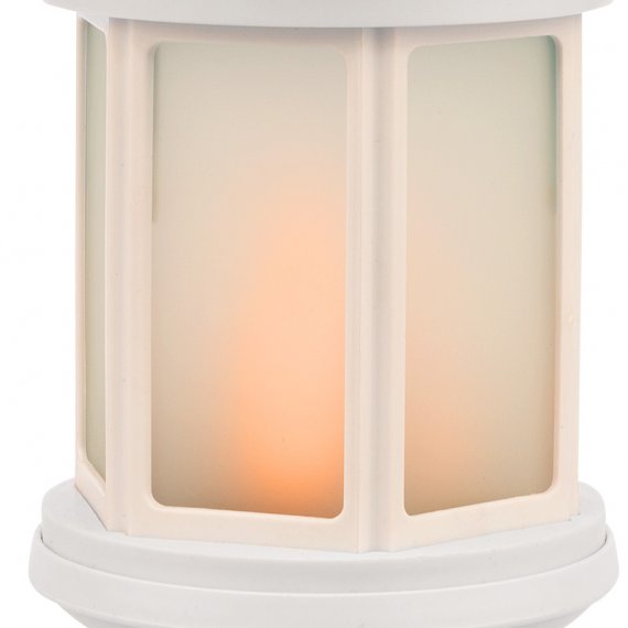 Декоративный фонарь с эффектом пламени свечи отличается стильным оформлением и необычным дизайном: свечка помещена в классический корпус белого цвета. Стекла с матовой поверхностью мягко рассеивают яркий поток, создавая комфортное для глаз свечение. Для подвешивания предусмотрено кольцо. За подсветку отвечает 21 белый диод, который экономно расходует заряд 3 батареек типа ААА. Отсек для элементов питания находится в нижней части корпуса и надежно закрывается крышкой. Кнопка ON/OFF включает и выключает свечение.
