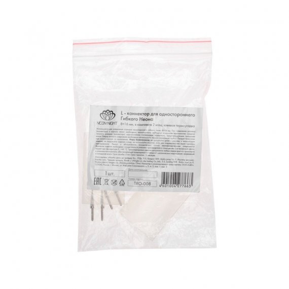 L - коннектор (муфта) используется для соединения двух отрезков одностороннего гибкого неона с постоянным свечением между собой под углом 90 градусов.