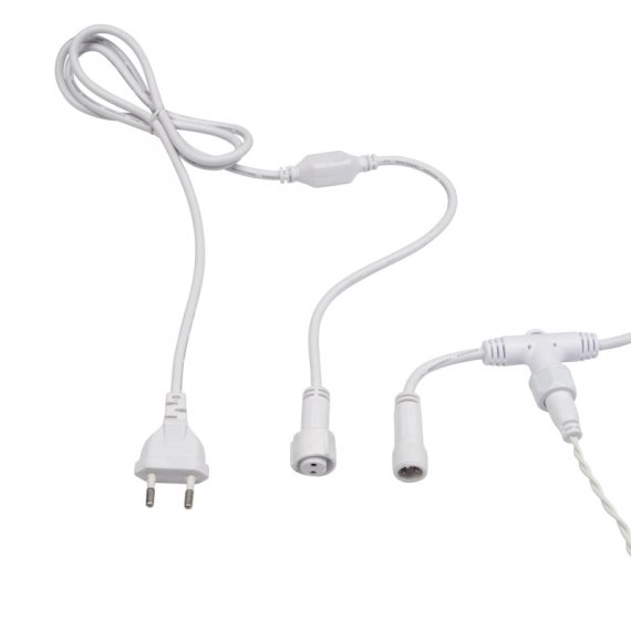 Гирлянда «Светодиодный Дождь» представляет собой гибкий горизонтальный шнур-шину (2 м), к которому через определенные промежутки крепятся вертикальные нити (16 шт.) со светодиодными лампами, которые отличаются от «Бахромы» тем, что имеют одинаковую, достаточно значительную длину, часто превышающую протяженность шины. На концах каждой шины есть разъем и штепсель, которые предназначены для последовательного соединения нескольких световых дождей в большой занавес ПЛЕЙ-ЛАЙТ. Используя занавес, можно не только создавать красивые световые занавесы или оформлять различные плоскости, например, фасады домов, окна и т. д., но и украшать объемные объекты.