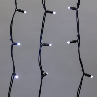Гирлянда Айсикл (Бахрома) представляет собой гибкий горизонтальный шнур-шину, к которому через определенные промежутки крепятся вертикальные нити разной длины со светодиодами.