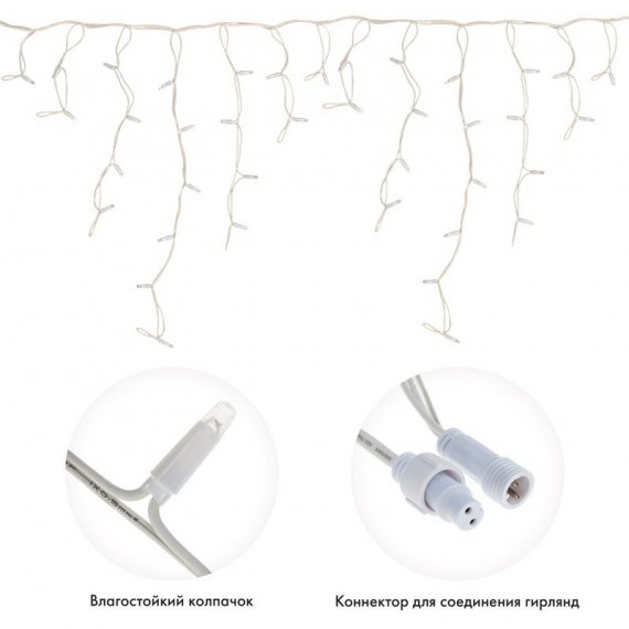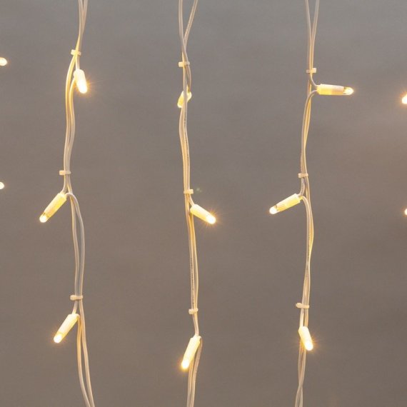 Гирлянда имитирует сосульки и может послужить оригинальным решением при украшении карнизов, арок, фасадов зданий, витрин магазинов, а также стать эффектным элементом декора внутри помещений.