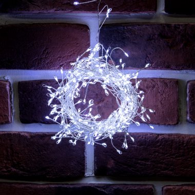 Гирлянда состоит из тонкого провода длиной 20 метров, с расположенными на нем 1000 белыми долговечными светодиодами.