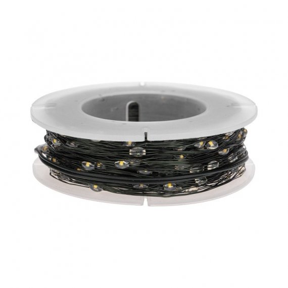 Гирлянда Роса длиной 30 метров представляет собой тонкий провод зеленого цвета, на котором горят и мерцают маленькие светодиоды, напоминающие капли росы.