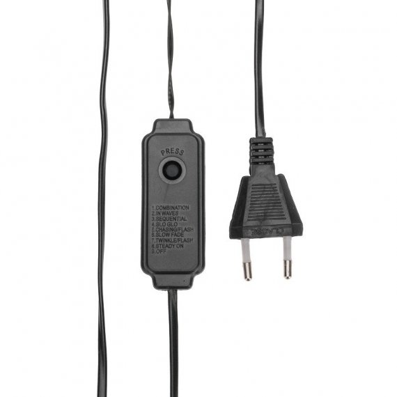 Гирлянда имеет 8 режимов свечения. Оснащена трансформатором и контроллером, который позволяет выбирать необходимый режим работы.