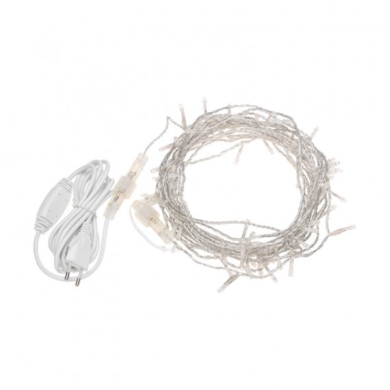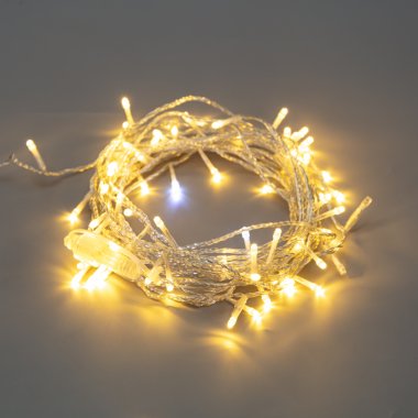 Нить может быть размещена вдоль стен, вокруг окон, на новогодней елке или других предметах. Гибкий провод позволяет легко создать желаемую форму или орнамент, а его прозрачность создает эффект парящих в воздухе огней. Каждый диод на гирлянде светит теплым белым цветом.