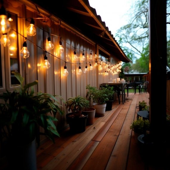 «Белт-Лайт» – популярная гирлянда для украшения фасадов домов, зданий, создания перетяжек между деревьями, столбами. Такие гирлянды широко используются в украшении кафе, ресторанов, свадебных площадок и фотозон. 100-метровый шнур оснащен 225 подвесными патронами с цоколем Е27. Патроны располагаются на иллюминационном кабеле с шагом 40 см. Для подключения к сети предусмотрен шнур с евровилкой. Провод находится в надежной изоляции из морозостойкого каучука. Вся конструкция защищена от влаги и пыли по стандарту IP65, что делает возможным размещение как в доме, так и на улице.