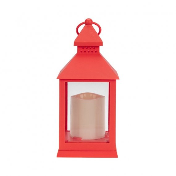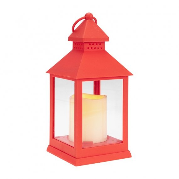 Декоративный фонарь со свечкой, красный корпус, размер 10,5х10,5х24см, цвет ТЕПЛЫЙ БЕЛЫЙ