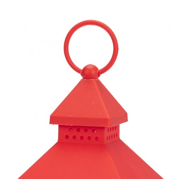 Декоративный элемент подсвечивается одним диодом, имитирующим теплое пламя свечи. Корпус красного цвета имеет высоту 24 см. Для размещения в подвешенном виде предусмотрено кольцо.