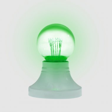 Лампа шар LED е27 DIA 45, 6 зеленых светодиодов, эффект лампы накаливания, прозрачная колба.