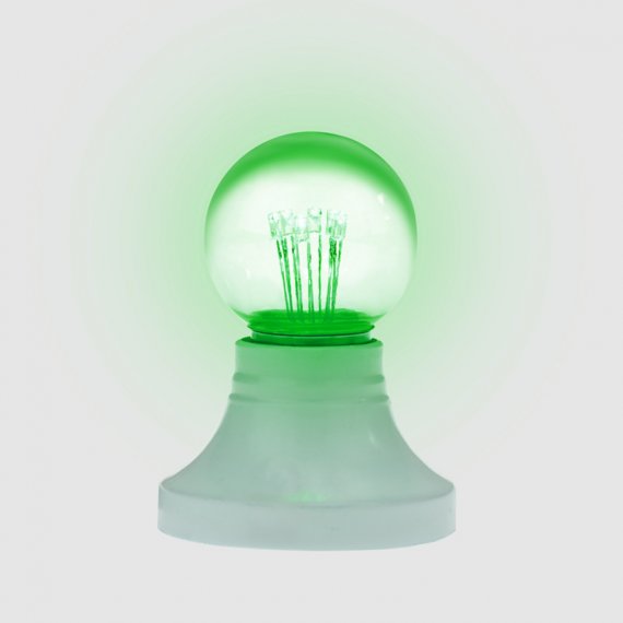 Декоративные светодиодные лампы используются с гирляндой Belt Light и служат для украшения улиц, фасадов зданий и интерьеров. Колба лампы имеет форму шара диаметром 45мм, что позволяет увеличить площадь свечения и насыщенность светом окружающего пространства. Она выполнена из ударопрочного прозрачного поликарбоната. 6 светодиодов расположены внутри таким образом, что создается впечатление что перед вами лампа накаливания уникального цвета. Декоративная лампа имеет стандартный цоколь Е27, при помощи которого установка является весьма простой процедурой не занимающей много времени. Суммарная мощность светодиодов составляет всего 1Вт, что позволяет снизить затраты на электроэнергию и подключить гирлянду большей длины. Светодиодные лампы используются с гирляндами Belt Light двух или пятижильными, а при ипользовании специального контроллера можно создать различные динамические световые эффекты.