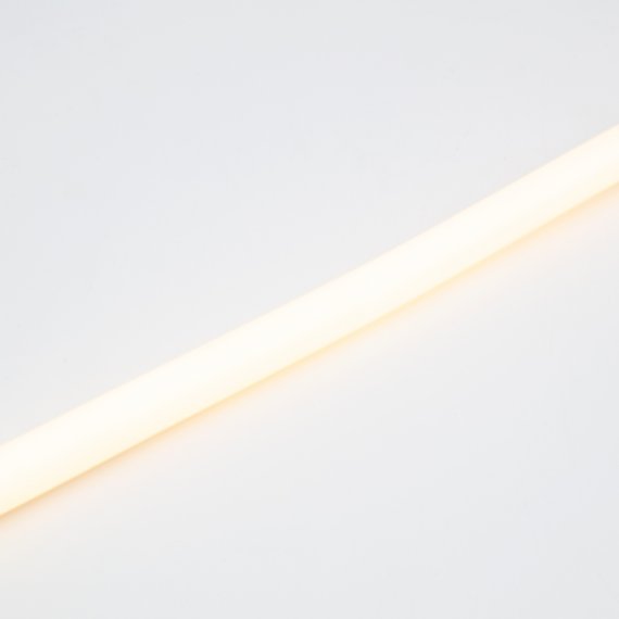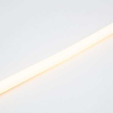 Гибкий неон – световой шнур, выполненный из матовой тепло-белой ПВХ трубки с токопроводящими жилами и светодиодами внутри. Используется для декоративной и архитектурной подсветки объектов, также широко распространен в украшении интерьера. Шнур имеет два токопроводящих провода внутри и используется в режиме постоянного свечения. Данный вид гибкого неона имеет угол свечения 360 градусов благодаря равномерному расположению светодиодов внутри ПВХ-трубки. Гибкий неон поставляется в бухтах длиной 50 м, имеет модуль резки 0,78 метра. Следуя несложной инструкции легко можно отрезать и подключить гибкий неон нужной длины. Температурный диапазон использования -25…+40 °С, монтаж необходимо производить при температуре -20…+40 °С. Допустимый диаметр изгиба составляет 3 см. При подключении гибкого неона к соединительному разъему (муфте), необходимо заизолировать свободное воздушное пространство соединительного разъема (муфты) морозостойким силиконовым герметиком, предотвращающим попадание влаги. Сверху данного соединения необходимо использовать термоусаживаемую трубку.