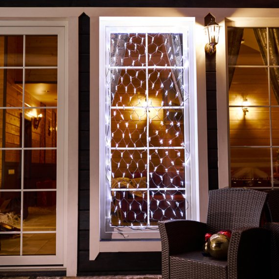 Гирлянда-сеть представляет из себя конструкцию ввиде прямоугольника размером 2*0,7 метра, разбитого на равные ромбы, в углах которых находится диод белого цвета. Гирлянда имеет степень влагозащиты IP44 и ПВХ провод черного цвета, что позволит вам быстро и выгодно решить вопрос с декоративным украшением любых объектов как внутри помещения, так и снаружи.В комплекте идет контроллер с 8 режимами свечения, что позволяет гирлянде работать в динамеке. Данная гирлянда используется для украшения фасадов и потолков зданий практически любой площади, отлично подходит для украшения небольших кустов, растяжки между направляющими в беседке или веранде, ей можно легко и быстро обмотать колонны или столбы, служит красивым декором окон зданий. Гирлянда-сеть имеет самое лучшее отношение цены к площади декорирования относительно других гирлянд, что делает ее уникальной в своем роде.