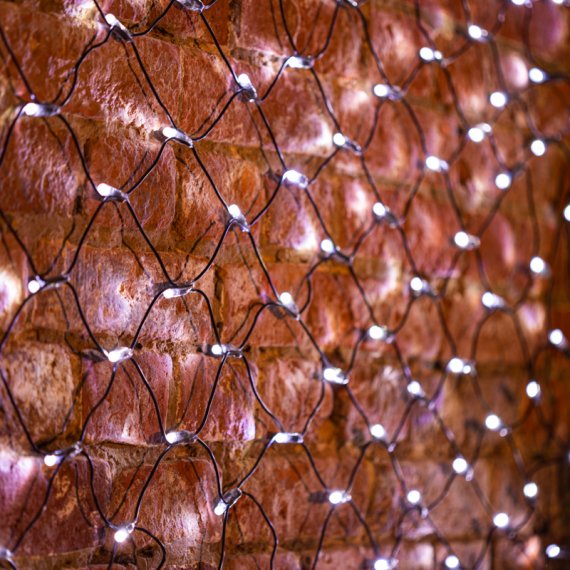 Гирлянда-сеть представляет из себя конструкцию ввиде прямоугольника размером 2*1,5 метра, разбитого на равные ромбы, в углах которых находится диод белого цвета. Гирлянда имеет степень влагозащиты IP44 и ПВХ провод черного цвета, что позволит вам быстро и выгодно решить вопрос с декоративным украшением любых объектов как внутри помещения, так и снаружи.В комплекте идет контроллер с 8 режимами свечения, что позволяет гирлянде работать в динамике. Данная гирлянда используется для украшения фасадов и потолков зданий практически любой площади, отлично подходит для украшения небольших кустов, растяжки между направляющими в беседке или веранде, ей можно легко и быстро обмотать колонны или столбы, служит красивым декором окон зданий. Гирлянда-сеть имеет самое лучшее отношение цены к площади декорирования относительно других гирлянд, что делает ее уникальной в своем роде.