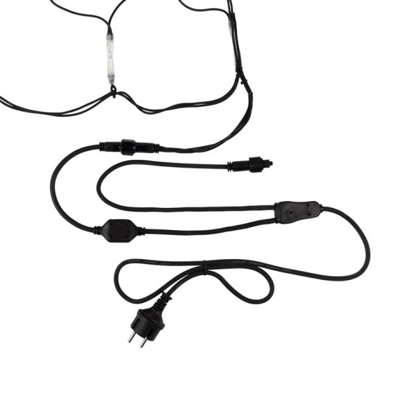 Гирлянда-сеть представляет из себя конструкцию ввиде прямоугольника размером 2*4 метра, разбитого на равные ромбы, в углах которых находяться два диода белого цвета, соединеных и расположеных по направлению друг к другу. Гирлянда имеет степень влагозащиты IP54 и каучуковый провод черного цвета, что позволит вам быстро и выгодно решить вопрос с декоративным украшением любых объектов как внутри помещения, так и снаружи. В комплект входит установочный набор для подключения гирлянды к сети. Особенностью этого типа гирлянд является то, что их можно соединять между собой и/или к ней можно также подключить контроллеры арт. 217-201 или 217-202 которые позволят гирлянде работать в динамике. Данная гирлянда используется для украшения фасадов и потолков зданий практически любой площади, отлично подходит для украшения небольших кустов, растяжки между направляющими в беседке или веранде, ей можно легко и быстро обмотать колонны или столбы, служит красивым декором окон зданий. Гирлянда-сеть имеет самое лучшее отношение цены к площади декорирования относительно других гирлянд, что делает ее уникальной в своем роде.т