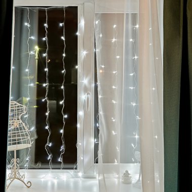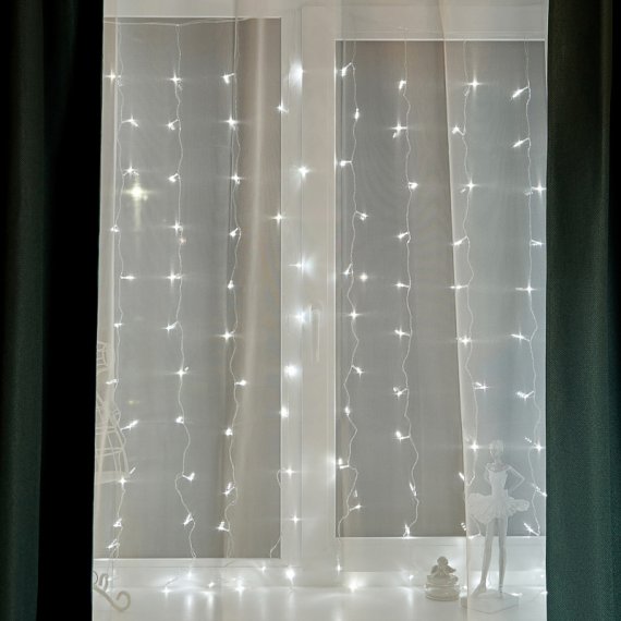 Гирлянда "Светодиодный Дождь" представляет собой гибкий горизонтальный шнур-шину (1,5м), к которому через определенные промежутки крепятся вертикальные нити (12 шт.) равной длины со светодиодами. Данная гирлянда предназначена для домашнего использования и идеально подойдет для украшения стандартного окна в квартире или офисе, а так же удачно подсветит пространство за плотными еле прозрачными шторами или тюлем.