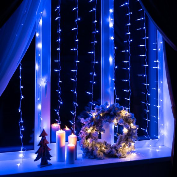 Предоставленная гирлянда содержит 300 светодиодов с Голубым цветом свечения.