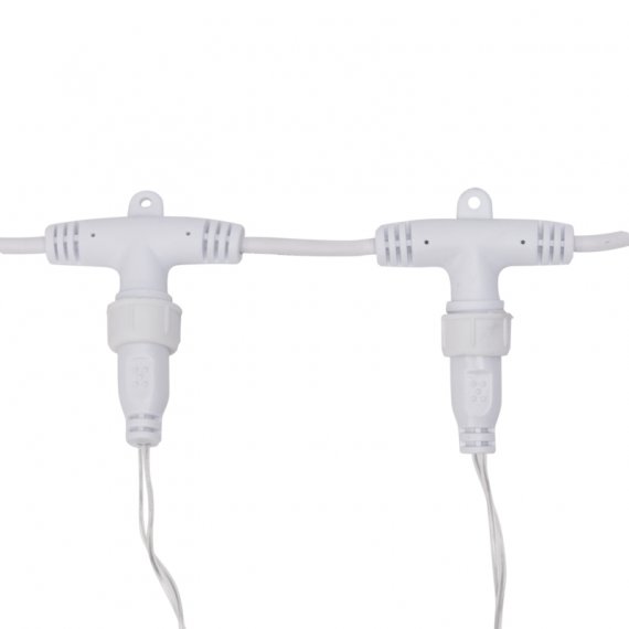 Гирлянда "Светодиодный Дождь" представляет собой гибкий горизонтальный шнур-шину (2м), к которому через определенные промежутки крепятся вертикальные нити (20 шт.) со светодиодными лампами, которые отличаются от «Бахромы» тем, что имеют одинаковую, достаточно значительную длину, часто превышающую протяженность шины. На концах каждой шины есть разъем и штепсель, которые предназначены для последовательного соединения нескольких световых дождей в большой занавес ПЛЕЙ-ЛАЙТ. Используя занавес, можно не только создавать красивые световые занавесы или оформлять различные плоскости, например, фасады домов, окна и т.д., но и украшать объемные объекты.