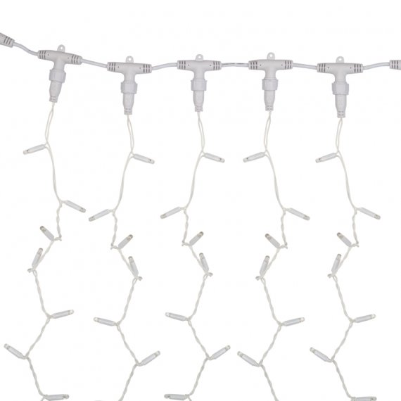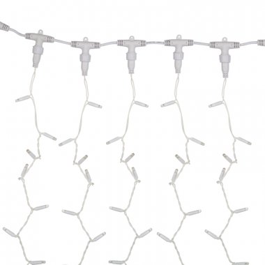 Гирлянда "Светодиодный Дождь" представляет собой гибкий горизонтальный шнур-шину (2м), к которому через определенные промежутки крепятся вертикальные нити (20 шт.) со светодиодными лампами, которые отличаются от «Бахромы» тем, что имеют одинаковую, достаточно значительную длину, часто превышающую протяженность шины. На концах каждой шины есть разъем и штепсель, которые предназначены для последовательного соединения нескольких световых дождей в большой занавес ПЛЕЙ-ЛАЙТ. Используя занавес, можно не только создавать красивые световые занавесы или оформлять различные плоскости, например, фасады домов, окна и т.д., но и украшать объемные объекты.