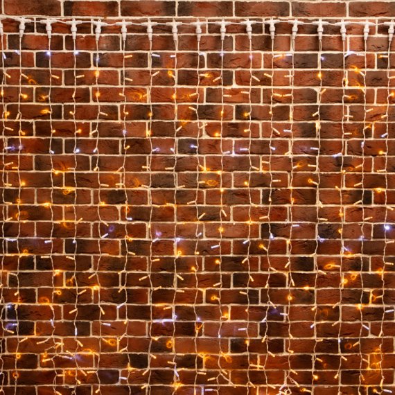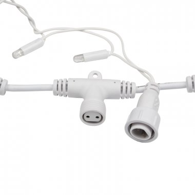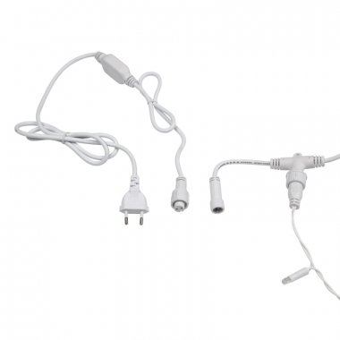 Гирлянда "Светодиодный Дождь" представляет собой гибкий горизонтальный шнур-шину (2м), к которому через определенные промежутки крепятся вертикальные нити (20 шт.) со светодиодными лампами, которые отличаются от «Бахромы» тем, что имеют одинаковую, достаточно значительную длину, часто превышающую протяженность шины. На концах каждой шины есть разъем и штепсель, которые предназначены для последовательного соединения нескольких световых дождей в большой занавес ПЛЕЙ-ЛАЙТ. Используя занавес, можно не только создавать красивые световые занавесы или оформлять различные плоскости, например, фасады домов, окна и т.д., но и украшать объемные объекты.