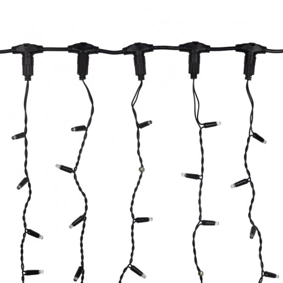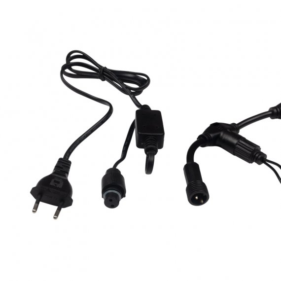 Гирлянда "Светодиодный Дождь" представляет собой гибкий горизонтальный шнур-шину (2м), к которому через определенные промежутки крепятся вертикальные нити (20 шт.) со светодиодными лампами, которые отличаются от «Бахромы» тем, что имеют одинаковую, достаточно значительную длину, часто превышающую протяженность шины. На концах каждой шины есть разъем и штепсель, которые предназначены для последовательного соединения нескольких световых дождей в большой занавес ПЛЕЙ-ЛАЙТ. Используя занавес, можно не только создавать красивые световые занавесы или оформлять различные плоскости, например, фасады домов, окна и т.д., но и украшать объемные объекты.