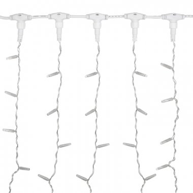Гирлянда "Светодиодный Дождь" представляет собой гибкий горизонтальный шнур-шину (2м), к которому через определенные промежутки крепятся вертикальные нити (20 шт.) со светодиодными лампами, которые отличаются от «Бахромы» тем, что имеют одинаковую, достаточно значительную длину, часто превышающую протяженность шины. На концах каждой шины есть разъем и штепсель, которые предназначены для последовательного соединения нескольких световых дождей в большой занавес ПЛЕЙ-ЛАЙТ. Используя занавес, можно не только создавать красивые световые занавесы или оформлять различные плоскости, например, фасады домов, окна и т.д., но и украшать объемные объекты.