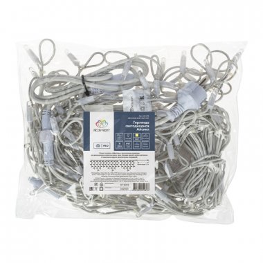 Данная гирлянда имеет Теплый белый цвет свечения и предназначена для использования как внутри помещения, так и снаружи.
