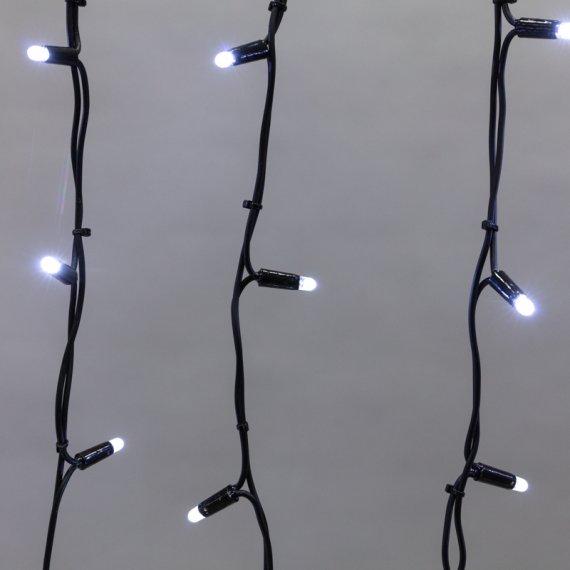 Данная гирлянда имеет Белый цвет свечения. Ее особенностью является наличие мерцающих светодиодов Белого цвета, которые привлекают внимание и значительно преображают украшенную поверхность (мерцает каждый пятый светодиод).