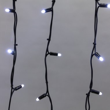 Гирлянда "Бахрома" ("Айсикл") представляет собой гибкий горизонтальный шнур-шину, к которому через определенные промежутки крепятся вертикальные нити разной длины со светодиодами. Она имитирует сосульки и может послужить эффектным и оригинальным решением при декорировании карнизов домов, арок, фасадов зданий, витрин магазинов, а также стать элементов декора внутренних интерьеров помещений.