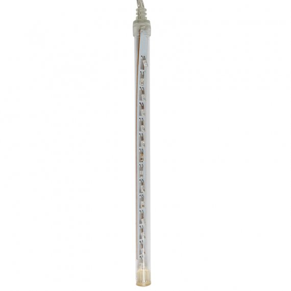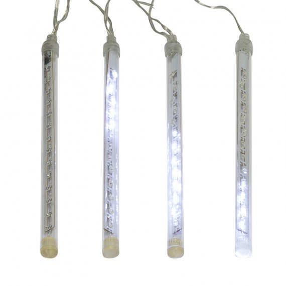 Светодиодная гирлянда «Тающие сосульки» - это оригинальное, красивое и современное средство оформления фасадов и интерьеров зданий, деревьев, витрин и т.д. Она представляет собой комплект из 4-х прозрачных пластиковых трубок, расположенных на расстоянии 50 см. По всей длине каждой трубки внутри надежно закреплена плата со светодиодами и микрочипом, обеспечивающим динамику с эффектом стекающей капли. Длина каждой трубки 20 см. Гирлянда работает от напряжения 12 V и имеет влагозащищённое исполнение, что позволяет безопасно использовать её как в помещении, так и на улице. Трансформатор для подключения идёт в комплекте с гирляндой. Цвет светодиодов - белый.