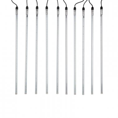 Светодиодная гирлянда «Тающие сосульки» — это оригинальное, красивое и современное средство оформления фасадов и интерьеров зданий, деревьев, витрин и т. д. Она представляет собой комплект из 10 прозрачных пластиковых трубок, расположенных на расстоянии 100 см друг от друга. По всей длине каждой трубки внутри надежно закреплена плата со светодиодами и микрочипом, обеспечивающим динамику с эффектом стекающей капли. Длина каждой трубки 50 см.