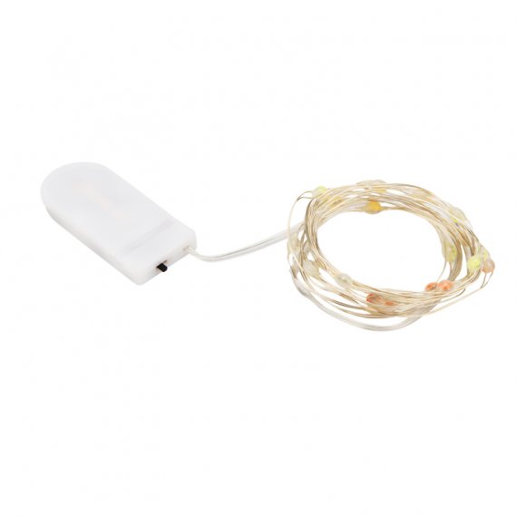 Светодиодная гирлянда «Роса» с красивыми крупными каплями – прекрасный декоративный элемент, светящийся разными огоньками и создающий атмосферу праздника и уюта. Это отличный способ акцентировать внимание на отдельных предметах интерьера, создать неповторимый арт-объект или использовать в качестве дополнительной подсветки. Гирлянда может эффектно подчеркнуть красоту картины, вазы с цветами, статуэтки или украсить небольшую елочку. Часто «Роса» украшает не только интерьер, но и с успехом применяется на торговых площадках и ярмарках для привлечения внимания к продукции. Гирлянда состоит из тонкого провода длиной 2 метра, с расположенными на нем 20 белыми долговечными светодиодами. Отличительной особенностью данной гирлянды являются более крупные диоды. В качестве питания у данной модели гирлянды выступают батарейки 2хСR2032, которые идут в комплекте. Создайте атмосферу праздника с помощью светодиодной гирлянды «Роса»!