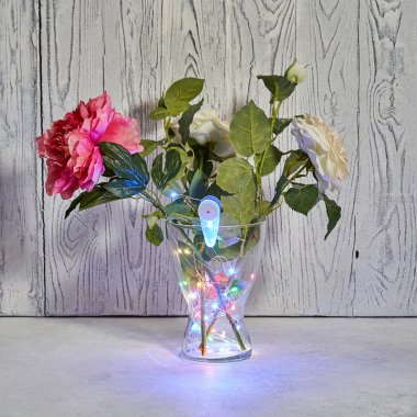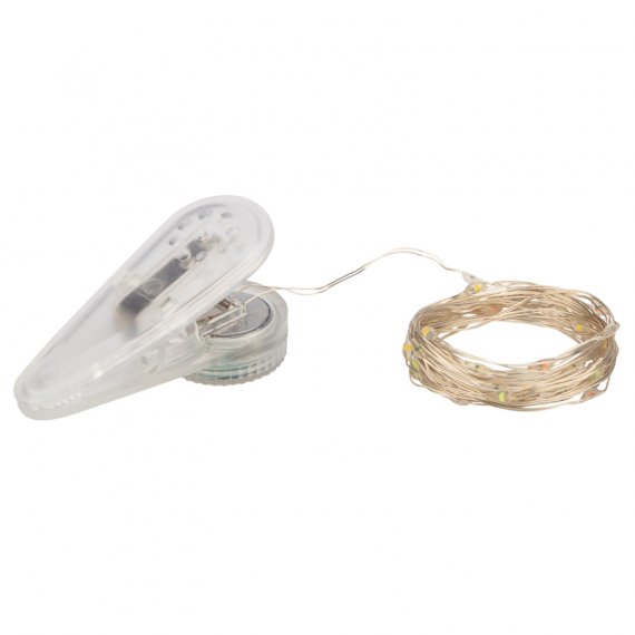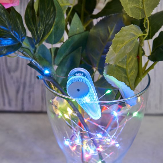 Светодиодная гирлянда «Роса» с прищепкой – прекрасный декоративный элемент, светящийся разноцветными огоньками и создающий атмосферу праздника и уюта. Это отличный способ акцентировать внимание на отдельных предметах интерьера, создать неповторимый арт-объект или использовать в качестве дополнительной подсветки. Гирлянда может эффектно подчеркнуть красоту картины, вазы с цветами, статуэтки или украсить небольшую елочку. Часто «Роса» украшает не только интерьер, но и с успехом применяется на торговых площадках и ярмарках для привлечения внимания к продукции. Гирлянда состоит из тонкого провода длиной 3 метра, с расположенными на нем 30 разноцветными долговечными светодиодами. В качестве питания у данной модели гирлянды выступают батарейки 2хСR2032, которые идут в комплекте. Создайте атмосферу праздника с помощью светодиодной гирлянды «Роса»!