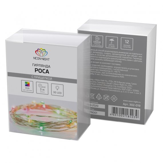 Гирлянда «Роса» с прищепкой 3 м, 30 LED, цвет свечения мультиколор, 2хCR2032 в комплекте NEON-NIGHT