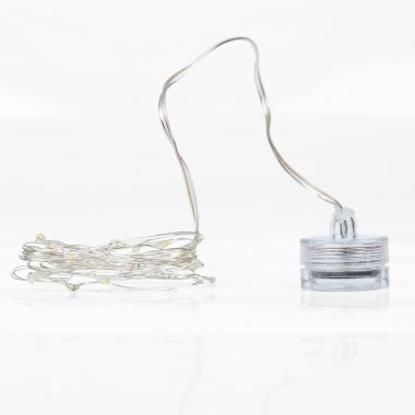Гирлянда светодиодная "Роса" состоит из тонкого провода длиной 2 м с расположенным на нем 20 светодиодами зеленого цвета свечения, а также батарейного блока. Блок крепится на дополнительный провод 30 см. Питание осуществляется при помощи 3 батареек типа AA. Данная гирлянда найдет свое применение в дизайнерских решениях внутри помещений при украшении предметов интерьера, растений и даже букетов цветов.