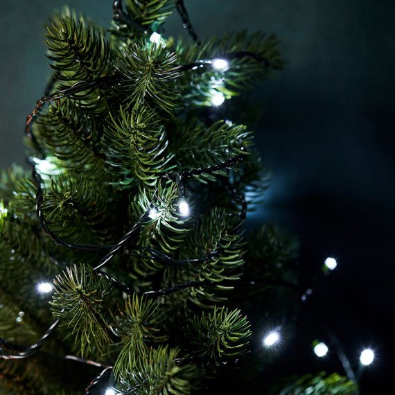 Гирлянду «Твинкл лайт» представляет собой общий провод с последовательно расположенными коротенькими отводами, направленными в разные стороны. На концах этих «отростков» расположены яркие светодиоды. Для создания праздничной светодинамики в общий провод встроен многопрограммный контроллер, который позволяет управлять 8 режимами свечения. Гирлянду «Твинкл лайт» создали в расчете на использование в качестве елочного украшения, в ее семейство входят самые разные гирлянды. Они различаются длиной, цветом и количеством светодиодов. Данная гирлянлда предназначена для домашнего использования. Светодиодные гирлянды имеют бесспорное преимущество перед ламповыми. Ресурс светодиодов составляет 30 000 ч. Благодаря малому энергопотреблению, рекордному ресурсу, высокой яркости, разнообразию и насыщенности цветов свечения они стали весьма привлекательным для потребителей. «Твинкл лайт» используют в качестве елочной гирлянды для украшения елей. Также гирлянда широко применяется для оформления различных витрин, окон, элементов интерьера и разнообразных экспозиций. Данная гирлянда имеет длину 4м, белый цвет свечения светодиодов.