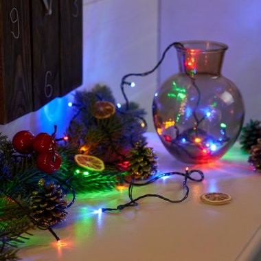 Данная гирлянда имеет длину 4 м, цвет свечения светодиодов мультиколор.