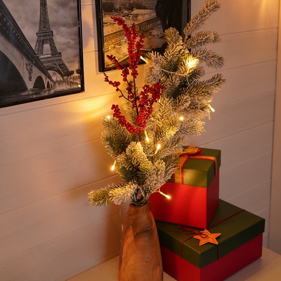 Универсальная светодиодная гирлянда длиной 1,2 метра имеет важное преимущество, которое способствует воплощению смелых идей в световом декоре помещений — изделие не требует подключения к электросети через стандартную розетку. 10 светодиодов, расположенных на проводе из прозрачного ПВХ, питаются от двух батареек типа АА. Гирлянда излучает теплый белый свет и отлично подходит для оформления небольших объектов: ваз, статуэток, букетов, торшеров, различных элементов мебели.