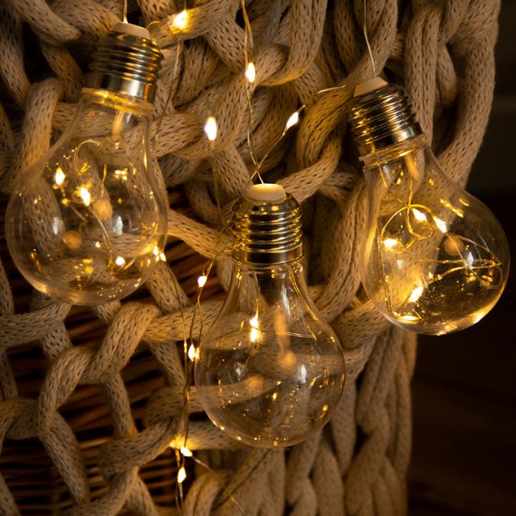 Стильное и необычное решение для украшения интерьера не только в новогодние праздники, но и в повседневной жизни. Гирлянда длиной 3 м и с питанием от батареек 3*АА(батарейки в комплект не входят). Расстояние между лампочками 30 см. Имеет кнопку ON/OFF.