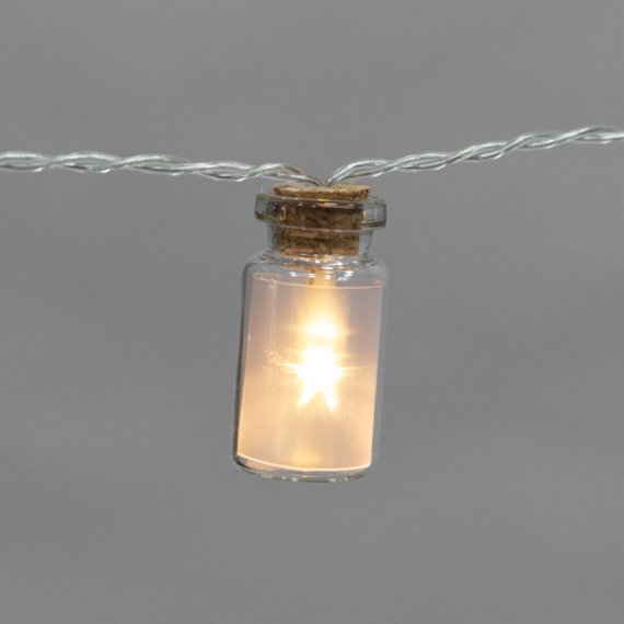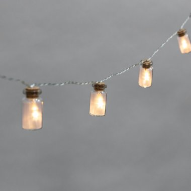 Светодиодная гирлянда «Баночки» — необычный, эффектный интерьерный декор, который украсит обстановку, подчеркнет особенности дизайна и уникальный стиль помещения. 10 насадок в виде баночек, расположенных на шнуре-основе, подсвечиваются яркими диодами, излучающими теплый белый свет. Гирлянда имеет батарейный блок и питается от двух элементов типа АА, что говорит об абсолютной безопасности изделия. Яркое оригинальное исполнение позволяет создать неповторимые акценты, которые неизменно привлекут внимание. Степень защиты IP20 предполагает домашнее использование.