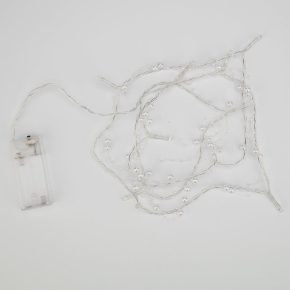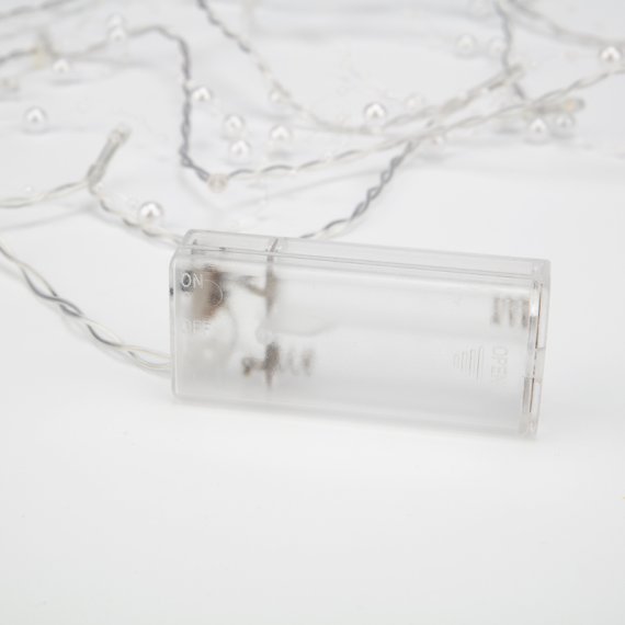 Светодиодная гирлянда «Жемчужинки» представляет собой провод-основу длиной 1,5 метра в прозрачной изоляции из ПВХ, на котором расположена "жемчужная нить". Вокруг декоративных элементов находятся диоды, излучающие белый свет теплого оттенка. Изделие получает энергию от двух батареек типа АА, что гарантирует абсолютную безопасность в использовании. Гирлянда станет эффектным украшением детской, спальни, гостиной, фотозоны, а также отдельных интерьерных объектов, находящихся в отдалении от стандартных розеток.