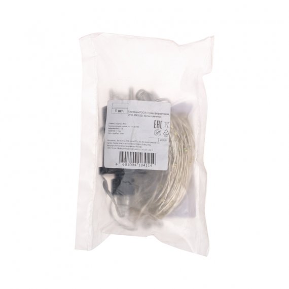 Светодиодная гирлянда «Роса» – прекрасный декоративный элемент, светящийся разными огоньками и создающий атмосферу праздника и уюта. Это отличный способ акцентировать внимание на отдельных предметах интерьера, создать неповторимый арт-объект или использовать в качестве дополнительной подсветки. Гирлянда может эффектно подчеркнуть красоту картины, вазы с цветами, статуэтки или украсить небольшую елочку. Данный вариант имеет большую длину и трансформатор для подключения в сеть с защитой IP44, что позволят использовать его и на улице. Гирлянда состоит из тонкого провода длиной 20 метров, с расположеннымии на нем 200 белыми долговечными светодиодами. Длина электрошнура 3 метра. Создайте атмосферу праздника с помощью светодиодной гирлянды «Роса»!