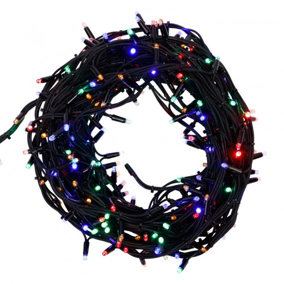 Данная гирлянда имеет длину 20 м, цвет свечения светодиодов мультиколор.
