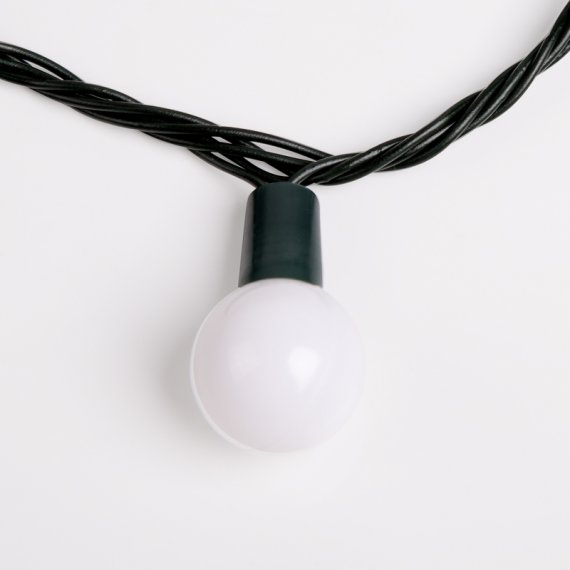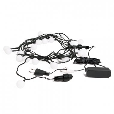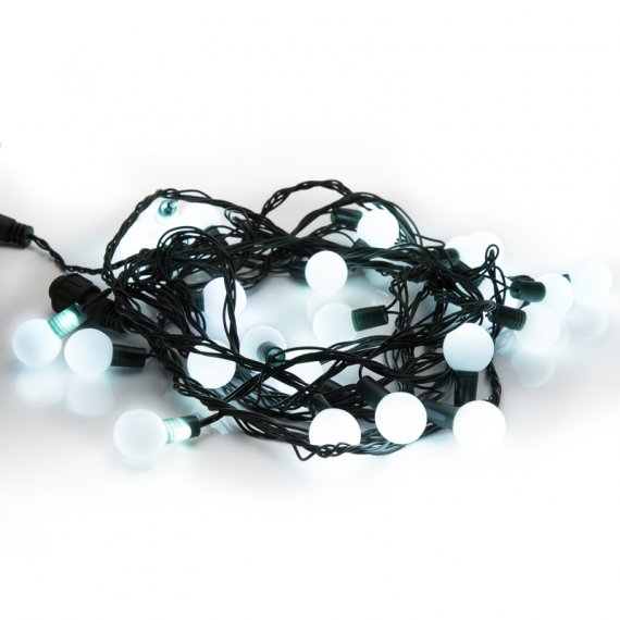 Данная гирлянда имеет длину 5м на которой расположено 25 шариков диаметром 18 мм с Белым цветом свечения светодиодов.