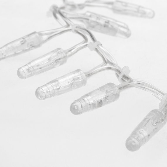 Гирлянда «Кластер» с большим количеством ламп позволит выигрышно декорировать светом натуральные и искусственные ели, хвойные гирлянды и композиции, а также подойдет для оформления интерьера дома, рабочего места, витрины магазина. Гирлянда прекрасно подходит для использования как внутри помещения, так и снаружи, благодаря высокой степени пылевлагозащищенности. Объемная светящаяся гирлянда представляет собой скопление сверкающих огоньков вокруг оси – провода. Данная гирлянда имеет длину 10 м, на которой равномерно расположено 400 диодов белого цвета свечения.
