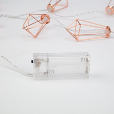 Светодиодная гирлянда «Кристаллы» длиной 1,5 метра — оригинальный, безопасный световой декор, созданный, чтобы притягивать внимание к яркому уникальному стилю вашего дома. Насадки в виде бронзовых кристаллов расположены на проводе, защищенном изоляционным слоем из прозрачного ПВХ. 10 диодов излучают теплый белый свет и мягко подсвечивают декоративные элементы. Гирлянда не нуждается в розетке: питается от собственного блока с 2 батарейками типа АА, что делает изделие мобильным и абсолютно безопасным даже для маленьких детей.