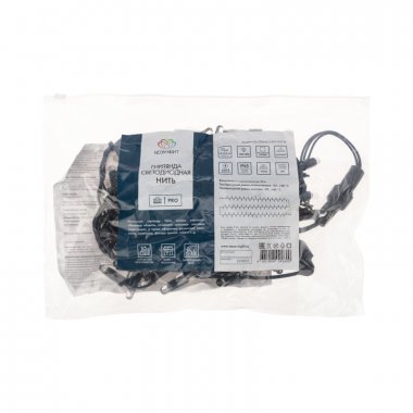 Гирлянда «Нить» представляет собой общий провод с последовательно расположенными коротенькими отводами, направленными в разные стороны. На концах этих «отростков» расположены яркие светодиоды. Общая длина гирлянды составляет 10 метров.
