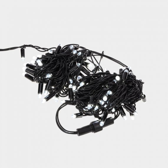 Данная гирлянда имеет черный ПВХ и Белый цвет свечения светодиодов. Гирлянда предназначена для использования как внутри помещения, так и снаружи, шнур питания/трансформатор в комплект не входит.