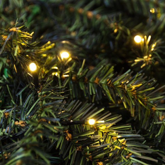 Хорошая влагозащищенность позволяет использовать "еловый шлейф" как дома, так и на улице. Благодаря своей гибкости, гирлянда может принять нужную форму, что подчеркивает ее универсальность. Она отлично подойдет для украшения дверных проемов, арок, колонн, украсит вход в Ваш загородный дом.